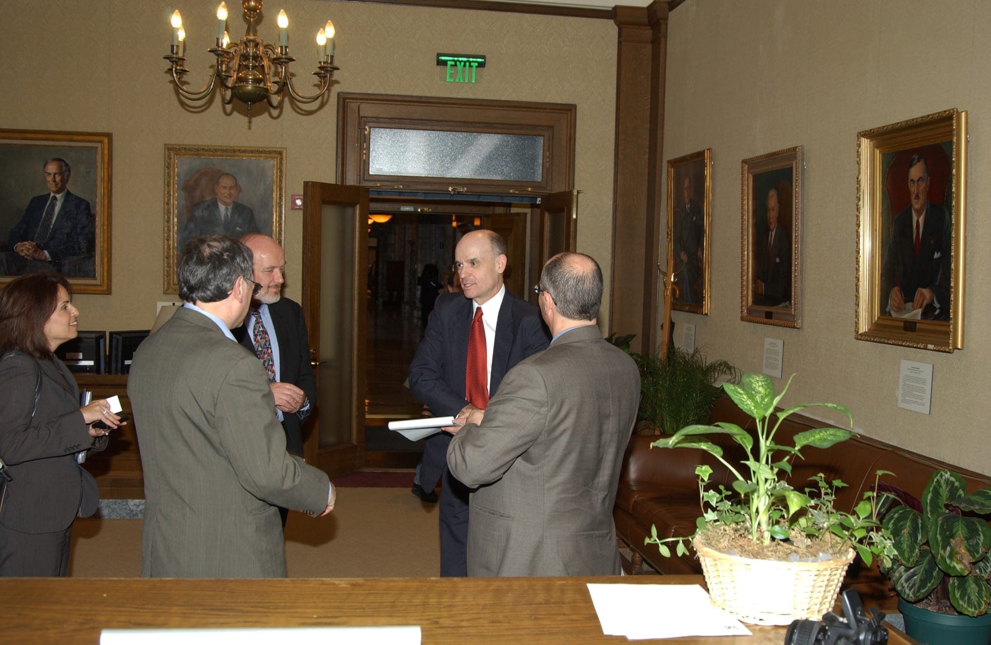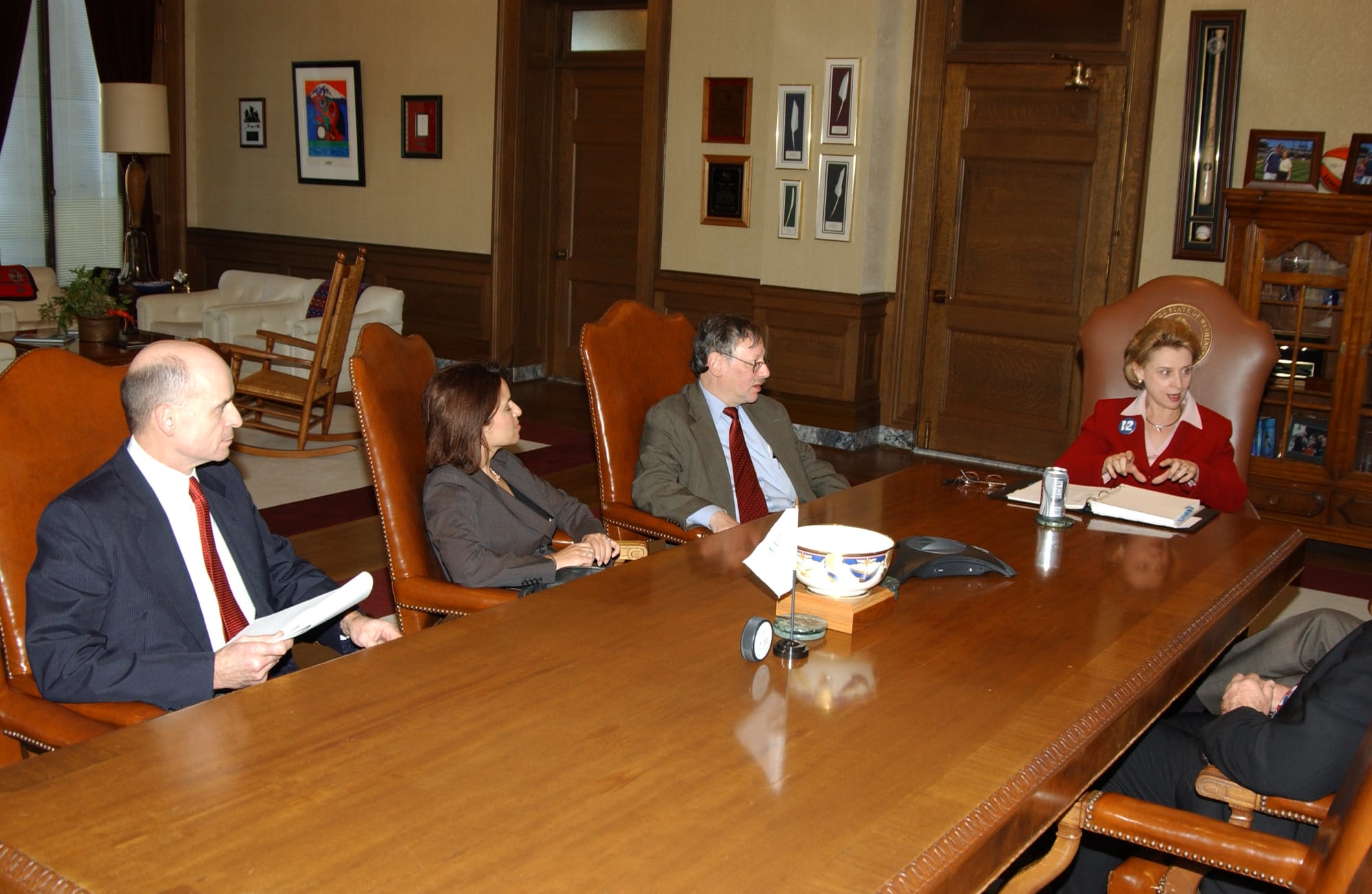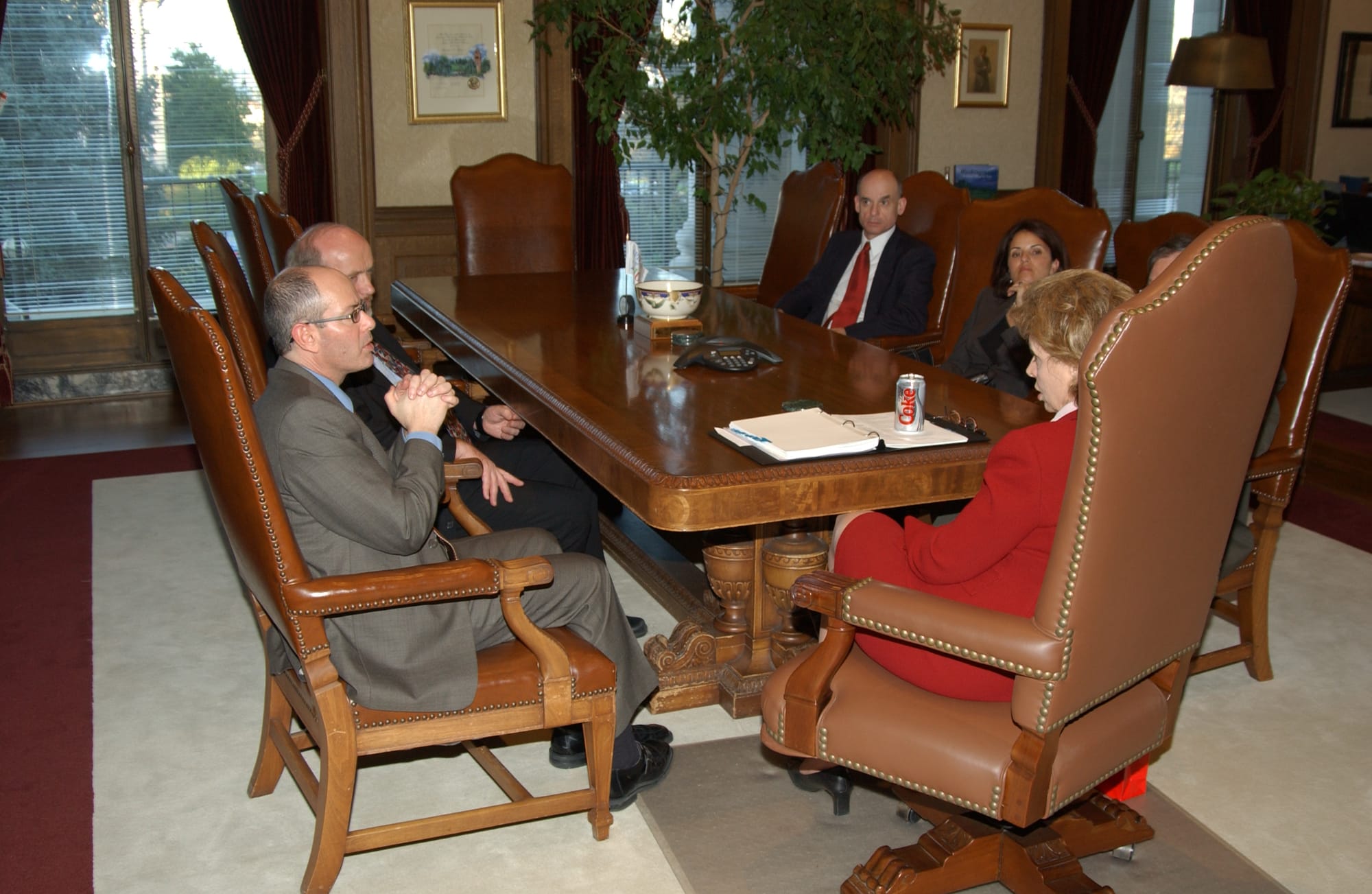 According to photographs, Shuly Galili, then-Executive Director of the California-Israel Chamber of Commerce; Zvi Alon, then-Chairman of Israel21c; and the same unidentified person who met with Gov. Locke, all joined the meeting with Gregoire.