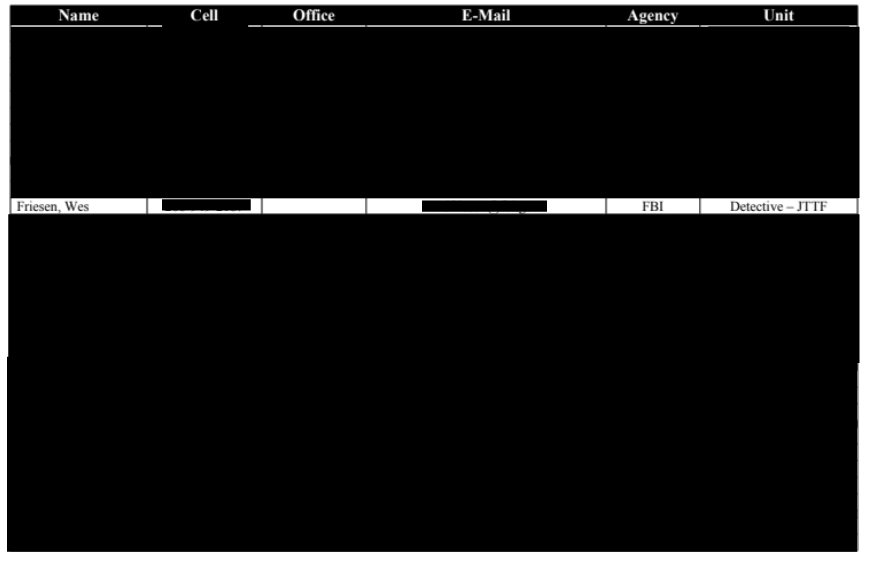 Asked if Friesen was still serving as a JTTF officer, the FBI Seattle office wrote to HardPressed that “The FBI does not routinely confirm the identities or assignments of personnel to ensure safety. At the guidance and direction of our Office of General Counsel, the Privacy Act prohibits us from commenting, unless it’s a Senior Executive Service employee or there is some other circumstance that rises to the level of an exception to the Privacy Act.”